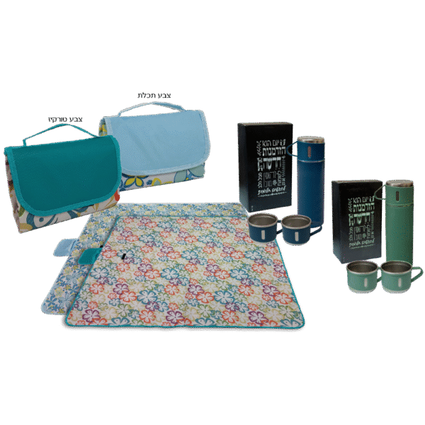 ערכת אביב מושלמת הכוללת תרמוס איכותי (750 מ"ל) עם שלושה ספלים תואמים ושמיכת פיקניק מרווחת בגודל 145×180 ס"מ.