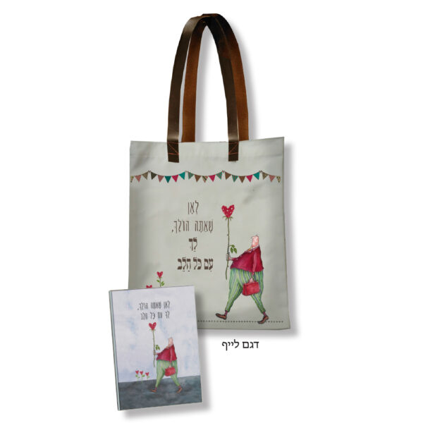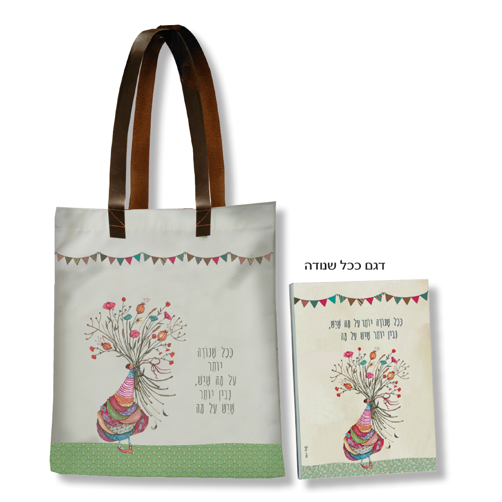 תיק כותנה עם ידיות עור ופנקס מעוצב